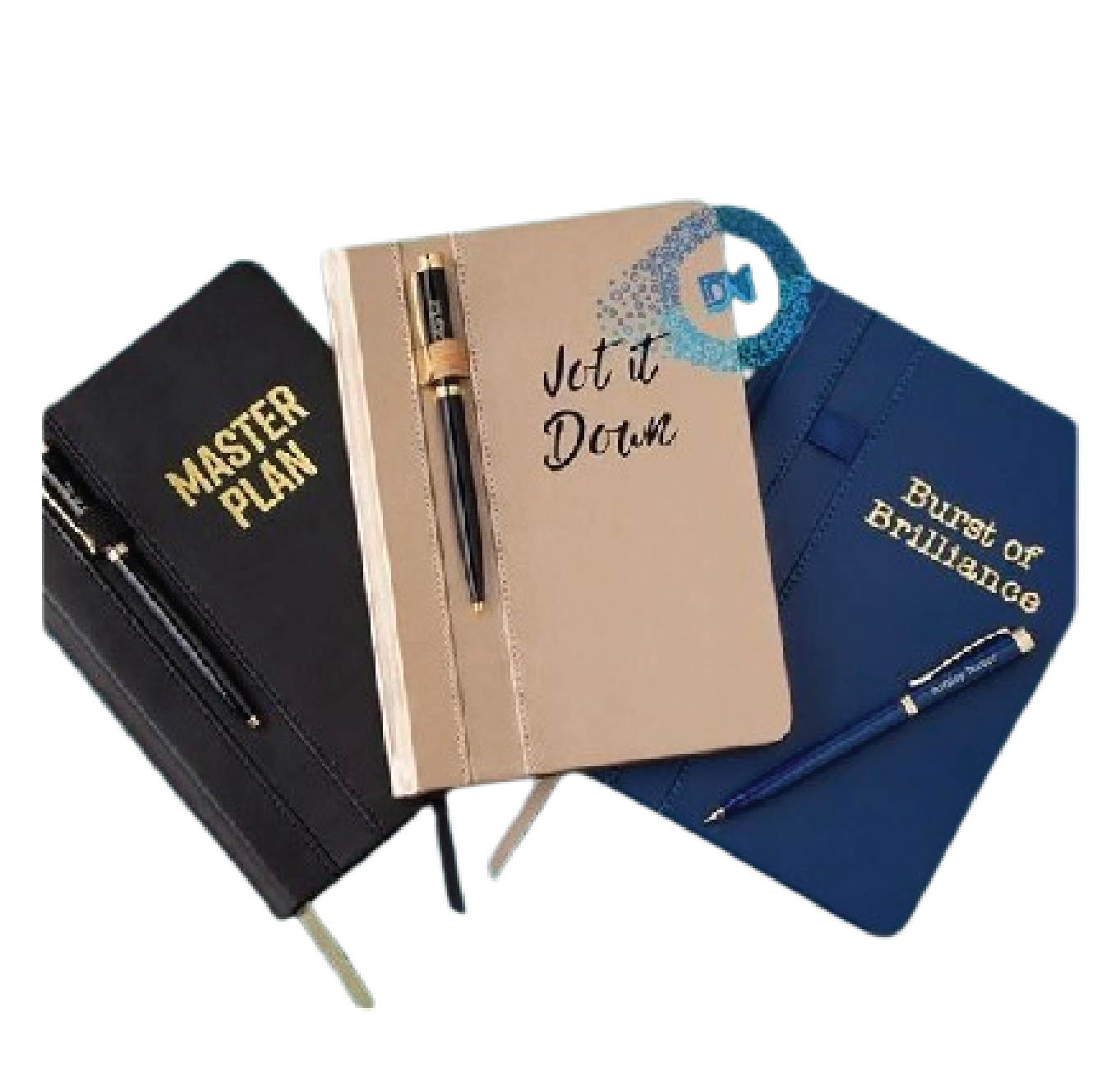 Premium hardbound and PU leather notebooks make impressive gifts.